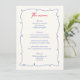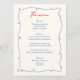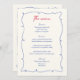 This delightful wedding menu boasts a whimsical and playful design that features a handwritten script font and a wavy hand-drawn border in stunning shades of color bright blue and hot pink. The perfect addition to any fun and vibrant wedding celebration, this menu can be customized to meet your personal preferences. You can easily adjust the placement of the text to avoid any overlap and ensure a flawless presentation of your menu