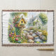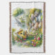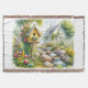 Whimsical Cottage Garden Birdhouse Stream Throw Blanket