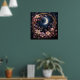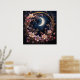 "Whimsical Crescent Bloom" is a beautiful poster design that captures the magic of a starry night. A radiant crescent moon glows against a deep blue, star-filled sky, all framed by a swirling, golden border and a profusion of delicate pink and purple flowers. This enchanting image is perfect for adding a touch of fantasy to any room.