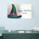 Whimsical birthday banner, featuring an elegant green witch hat adorned with sparkling pink jewels and a whimsical crown. Perfect for fans of musical fantasy and enchanted celebrations, this design is sure to impress. The vivid colors and magical details evoke a sense of wonder and charm, ideal for milestone birthdays, themed parties, or any gathering with a touch of fantasy.