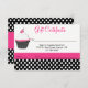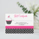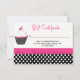Pretty bakery business gift certificate done in white and pink with a black and white polka dot accent. Whimsical graphics of a pink, white, and black cupcake decorates the left front and back, of the card. Text is ready to personalize to suit your business needs. Matching business cards are available.