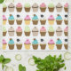 Sweet and whimsical pattern features six different cupcakes in fun and vibrant colors