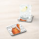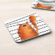 Whimsical Curious Cat on Stripes Pattern Beverage Coaster