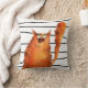 Whimsical Curious Cat on Stripes Pattern Throw Pillow