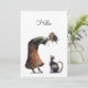 Whimsical Cute Cat and Lady Hello Flat Card
