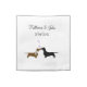 Lovely white cloth napkins with sweet graphics of a brown and a black dachshund kissing, with hearts floating up. Black script text above the dogs has the bride and groom's names and wedding date. Personalize with your information for a lovely addition to your reception, and makes a great keepsake for your guests.
