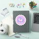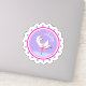 Whimsical dancing ballerina swan scalloped embellished with hearts sticker. Cute purple, pink, aqua, and white colors. Personalize with your own girls name around the top currently reads Abbey. Reproduced from a original watercolor painting by Sarah Trett www.sarahtrett.com for www.mylittleeden.com