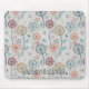 Dandelion Pattern Mousepad - A charming seamless pattern featuring whimsical, stylized flowers and intricate dandelion seed heads, paired with abstract botanical details. The muted palette of blues, teals, yellow, red, orange, and white on a soft grey-blue background creates a soothing, harmonious look.