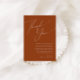 This whimsical desert | terracotta table thank you card is perfect for your simple rustic western beige and terracotta earth tones wedding. The neutral earthy boho color palette is vintage southwestern with a modern retro feel. The script is a delicate minimalist handwritten calligraphy that is quite elegant and romantic. The product is editable and has plenty of blank space, so you can add your own graphics or pictures if you want to customize it! Please feel free to ask any questions regarding any product's design; we are happy to help!