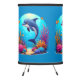 Whimsical Dolphin in Vibrant Coral Reef, Blue Tripod Lamp