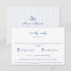 Whimsical hand drawn doodle, wedding rsvp card with diet restriction/allergy note. French Blue typography with doodle accents and coordinating light blue stripe pattern backing.