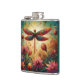 Whimsical Dragonfly Floral Abstract Art Teal Pink Flask