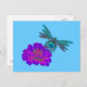 Whimsical colorful aqua dragonfly on a bright pink zinnia flower cute postcard. Click on Customize to add text. Contact me with design questions or requests. Matching postage stamps available. This image is available on many products in my store. Thanks for stopping by Smilin' Eyes Treasures.