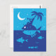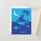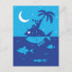 This Whimsical Postcard features an illustration of dreamy fancies of the musician who's crossing the ocean on the back of big fish and playing tune for the Moon and Stars. Design is done in blue and navy colors.
