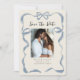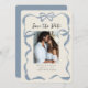 Whimsical Dusty Blue Bow Save the Date with Photo