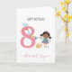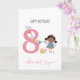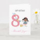 An adorable 8th birthday card with the cutest little fairies that you can personalise. The birthday fairy collection is perfect for little girls who adore magical creatures. You can choose between two types of card. You can choose either silky gloss paper or matte paper. Matte, is a classic, all-around paper with a natural feel and an uncoated matte. Elegant and understated, colours print softer and more subtle. Semi-Gloss produces crisp, vibrant images with exceptional colour and detail. . © Julie McIver