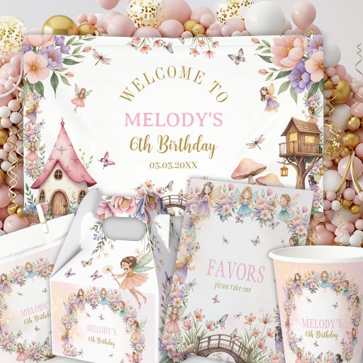 Whimsical pink and purple fairy enchanted flower garden birthday