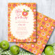 Celebrate your little blessing with this cheerful “The Apple of Our Eye” fall baby shower invitation, featuring a vibrant orange background and playful apple illustrations that perfectly capture the warmth of autumn. Designed to be gender-neutral and suitable for honoring a baby boy or girl, this modern yet rustic invitation blends bold seasonal colors with a sweet heart-accented apple centerpiece. The charming scalloped frame and stylish typography make your event details pop, while the apple orchard theme adds a cozy, festive touch. Ideal for fall gatherings, harvest parties, or farm-inspired baby showers, this customizable design ensures your celebration will be as memorable as it is heartwarming.