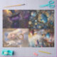 Bottom Right: Soar through the cosmos of time a little girl floats amidst clocks, planets, and stars. Her dress and hair flow as if carried by the cosmic winds, making her look like a true star traveler. This cosmic scene is vibrant and brimming with wonder of looking for the time of the next Easter.