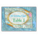Blue sky and green foliage, or bold floral splendour, signify peace and prosperity for all and are personalized for the wedding couple's celebration. - number and name cards for each table.