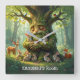 Whimsical Father Tree with Woodland Creatures Square Wall Clock