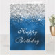 Cute pretty chic modern design features girly faux sparkly silver glitter over a faux royal blue ombre foil. The color of the Happy Birthday text graphic can be changed, or delete. Personalized inside message using text from the system.