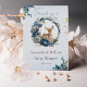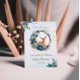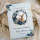This striking vertical thank you card features a delicate fawn nestled in a lavish watercolor wreath of navy blue roses, gold leaves, and dusty greenery. The portrait orientation beautifully highlights the artistic detail and the elegant script "Thank you." It's a whimsical yet sophisticated way to express gratitude and give guests a beautiful keepsake from your unique woodland baby shower.