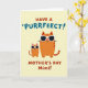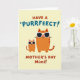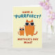 This greeting card features two stylized cats standing close together on a pale yellow background, their bodies angled as if sharing a friendly, affectionate moment ❤️. The larger cat is a warm ginger tone with russet stripes, and the smaller companion mirrors the look, creating a cozy, matched-pair feel. Both wear bright white sunglasses that add a cool contrast, while the larger cat’s small pink nose and slight smile peek out beneath the frames. Above them, the word “PURRFECT!” sits centered near the top in chunky blue letters with red accents and a subtle shadow for depth. Below the cats, a short dedication line appears in red text, placed near the lower portion of the design and aligned to feel neatly balanced with the headline. The overall layout keeps the characters in the middle with plenty of open space around them, letting the warm colors and gentle closeness do the talking 🌼. The pale yellow field stays uniform, and the blue-and-red headline stands out sharply above the two orange-striped figures in white shades.