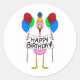 Whimsical Flamingo Happy Birthday Balloons Classic Round Sticker