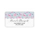Address labels with a pattern with a fun summery vibe. Pink flamingos and pineapples set on a light blue striped pattern with leaves and hearts all around.