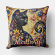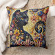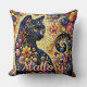 Whimsical Floral Black Cat Kitty Personalized Throw Pillow