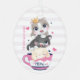 Whimsical Floral Cartoon Cats Strawberry Cupcake Metal Ornament