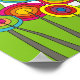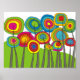 Whimsical Flower Art Poster in bright bold colors. Funky flowers, in colors of green, yellow, orange, bright blue and red.