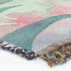 A quality printed throw has its advantages. This is a much finer weave throw than its loopier cousins, and though lighter, it is worth the investment for custom room accessorizing. The back is much prettier than the typical brown, and the fringe on the long sides very vivid, the selvage nicely done. Before photographing, I washed the throw in cold water, delicate, with a thicker woven throw the same size. On tumble dry low, this throw was dry in half the time as the other. This is a very practical quality if you use throws for furniture covers or to wrap up in frequently. The sleekness of the fabric makes it a great layer for accenting or protecting without the feeling of sitting on too much stuff. Perfect for napping or when you feel a light chill coming on. The color printing is beautiful and on this fabric, matched the design and color of my Photoshop image. This is an advantage for blending room fabrics and colors. The fringe on the short sides prints the colors from the design image and therefore varies from the side fringe. I streaked a white fractal line through the plaid pattern to give the illusion of weaving. This printed as crisp as an illusory thread, and put some white in the short side fringe, showing another advantage of print vs loomed- for artistic purposes, line lines, detail, and color integrity can be planned and preserved. My loomed throws have color limitations and more of a needlepoint texture. Print throws reproduce an exact image. The throw felt a little stiff straight out of the package, but this went away in the first delicate wash. Of course I searched the wash water for ink or bleeding and there was none.