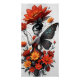 This whimsical flower fairy illustration captures the magic of fantasy and nature in a graceful, dreamlike style. The fairy wears a vibrant dress made of blooming flowers in warm autumn tones, beautifully contrasted by dark, elegant butterfly wings.