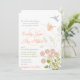Whimsical Flowers & Humming Birds Coral and Gray Wedding Invitation-