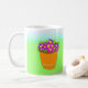 A bright design featuring a whimsical flower pot bursting with colorful flowers.
