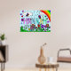 A large pretty colorful poster for a child's bedroom with the name Hannah. Colorful flowers, purple, pink, red, yellow, blue and green accents with a pretty rainbow, butterflies, caterpillars and ladybugs.