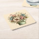 Whimsical Flowers in a Planter Pot Cute Square Paper Coaster