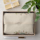 Tissue paper with a cute image. Blue. pink and cream colored flowers with green leaves. Set inside a green flower pot with a green plaid cloth hanging over the side.
