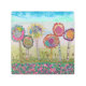 Fun, colorful, large whimsical flowers with mixed-media centers and various decorative designs for their stems makes this metal art a delightful addition to any room.