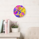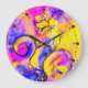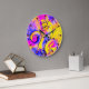 WHIMSICAL FLOWERS pink yellow blue Large Clock