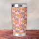Pretty personalized stainless steel thermal tumbler with a colorful whimsical floral pattern .