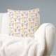 Whimsical wildflower throw pillow adorned with delicate wildflowers, sweet pink bows, fluttering butterflies, and pink hearts. This pillow brings soft, romantic vibes to any room.