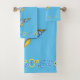 Whimsical Flying Bluebird Yellow Tail Scrolls Bath Towel Set