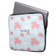 Whimsical flying pigs neoprene laptop sleeve with customisable text.