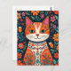 Orange and blue folk art kitty cat with blue eyes and a floral background ai art.