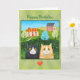 Whimsical Folk Art Cats Custom Message birthday Card