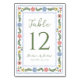 Guide your guests to their seats with this whimsical floral wedding table number card, featuring your table number displayed prominently at the center. A decorative frame of watercolor florals and greenery surrounds the design, showcasing blooms in shades of pink, blue, yellow, and soft green for a fresh and inviting look. The frame is accented by a delicate blue scalloped border, adding a soft, classic detail that enhances the overall design. The couple’s names and wedding date are placed below creating a polished and balanced presentation. Perfect for garden weddings, spring weddings, and summer weddings, this table card adds a colorful yet refined touch to your reception décor.