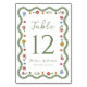 Add a charming and colorful touch to your reception with this whimsical folk art floral wedding table number, featuring your table number displayed prominently at the center for easy guest navigation. A scalloped border of watercolor greenery surrounds the design, accented with playful folk art florals and decorative dots in shades of red, pink, golden yellow, blue, and soft green. The couple’s names and wedding date are placed below in a clean, easy to read layout, creating a balance of whimsical detail and classic structure. Perfect for garden weddings, spring weddings, and summer weddings, this table number brings a cheerful, artistic element to your wedding décor while helping guests find their seats with ease.